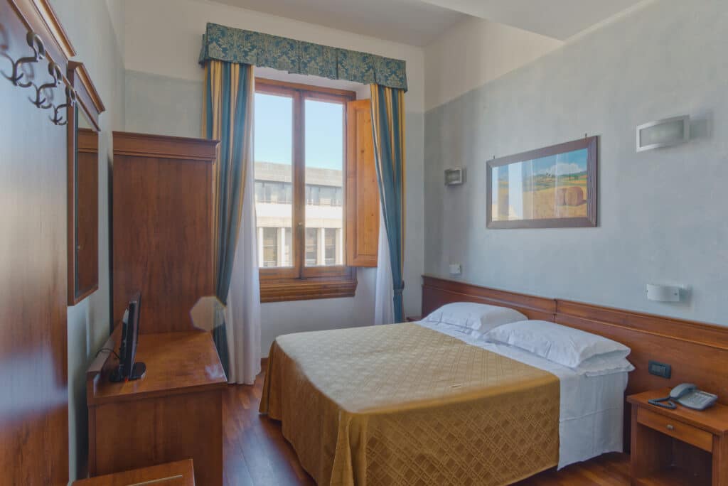 Caratterizzata da arredi classici e pavimento in parquet, dispone di ampie finestre che donano luminosità naturale, affacciandosi sulla strada o sul tranquillo cortile interno dell’hotel. La camera è dotata di tutti i comfort: Wi-Fi gratuito, aria condizionata o riscaldamento, TV, cassaforte, minibar, telefono, scrivania e armadio. Il bagno privato dispone di doccia, bidet, asciugacapelli, asciugamani e set di cortesia.