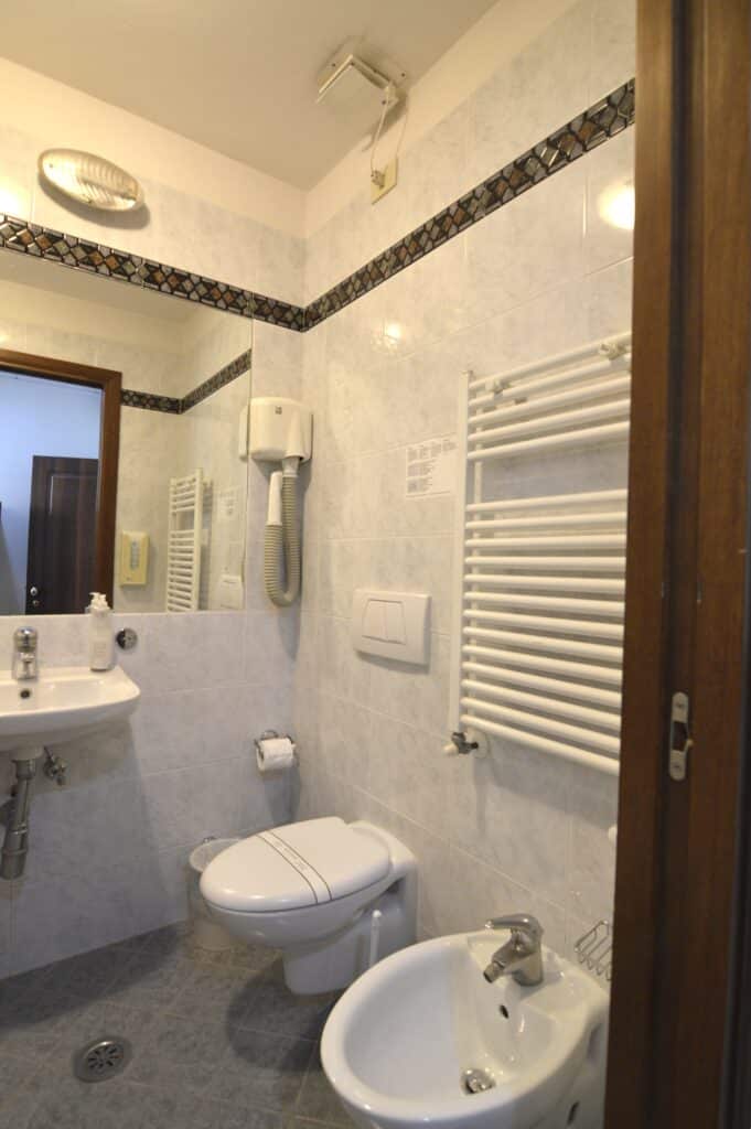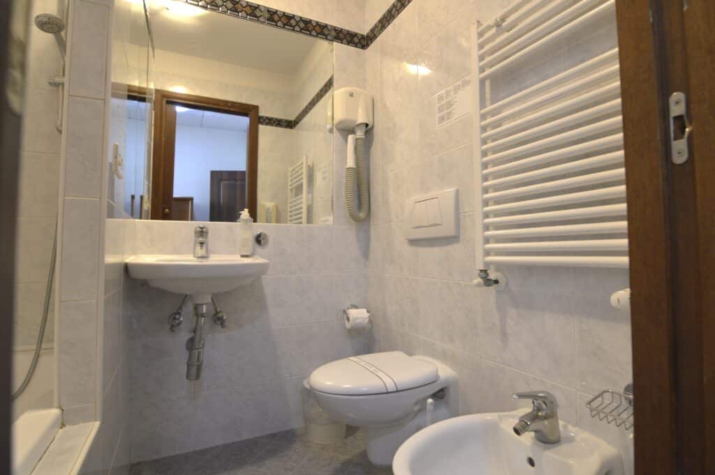 Arredata con mobili funzionali e pavimento in parquet o maiolica, dispone di ampie finestre che affacciano sulla strada, offrendo luce naturale e un ambiente accogliente. Il bagno privato è completo di doccia o vasca, bidet, asciugacapelli, prodotti da bagno e asciugamani.